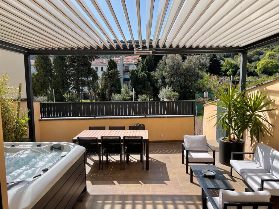 Une place de parking privatisée est comprise avec le logement. Magnifique vue sur les Albères, le fort Saint Elme et la Tour Madeloc.